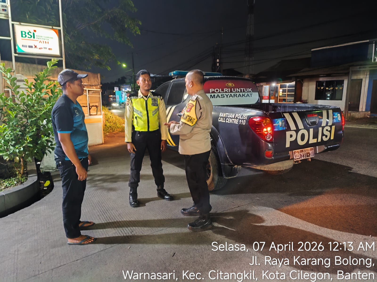 Cilegon - Polsek Ciwandan Polres Cilegon Polda Banten kembali menunjukkan komitmennya dalam menciptakan keamanan dan ketertiban masyarakat (kamtibmas) yang kondusif melalui Kegiatan Patroli Malam, Kegiatan ini dilakukan secara rutin dengan berkeliling di daerah hukum Polsek Ciwandan, Selasa (07/04/2026).