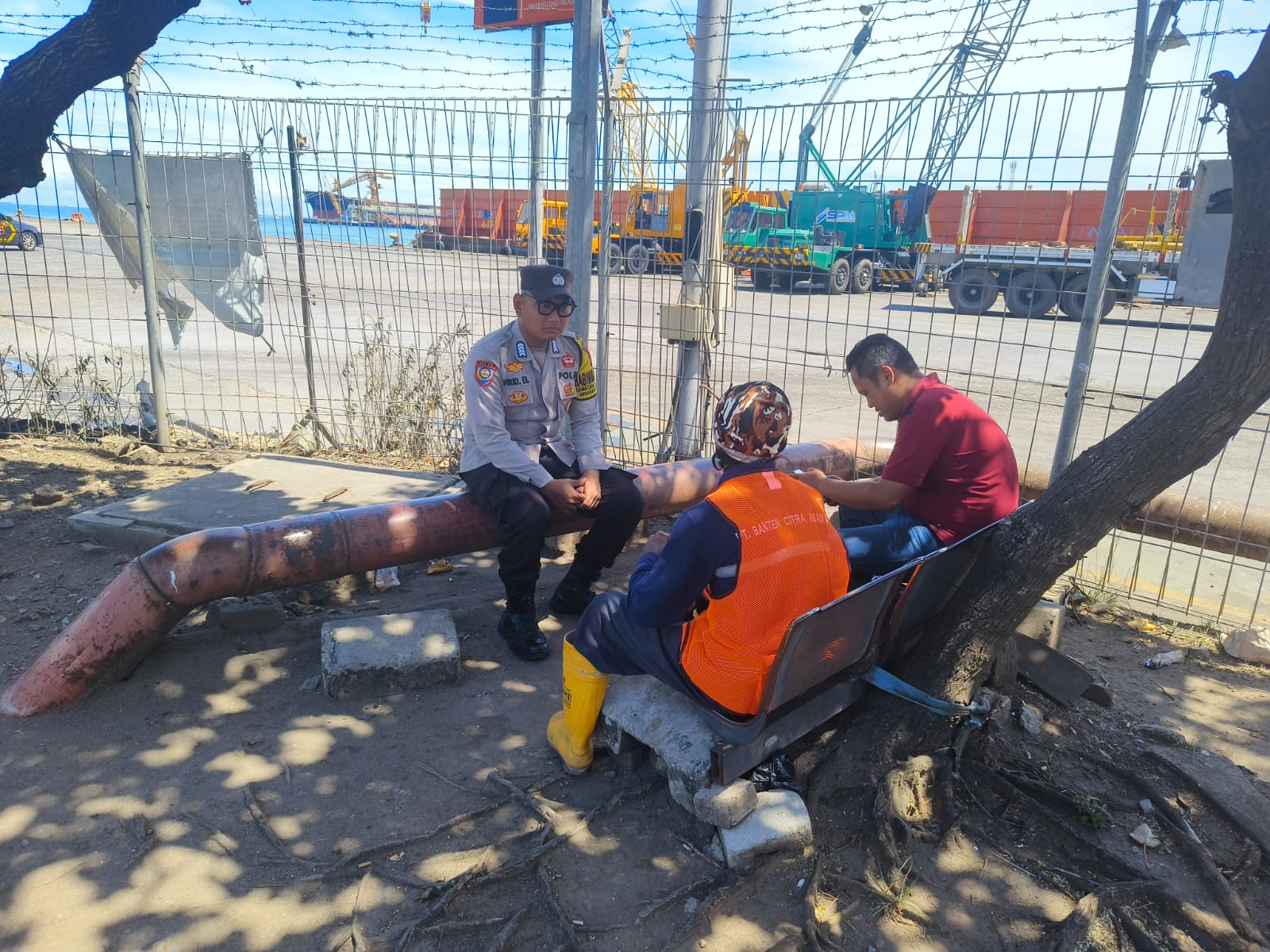 Personil Bhabinkamtibmas Polsek KP Banten Berbincang dengan Karyawan Pelabuhan