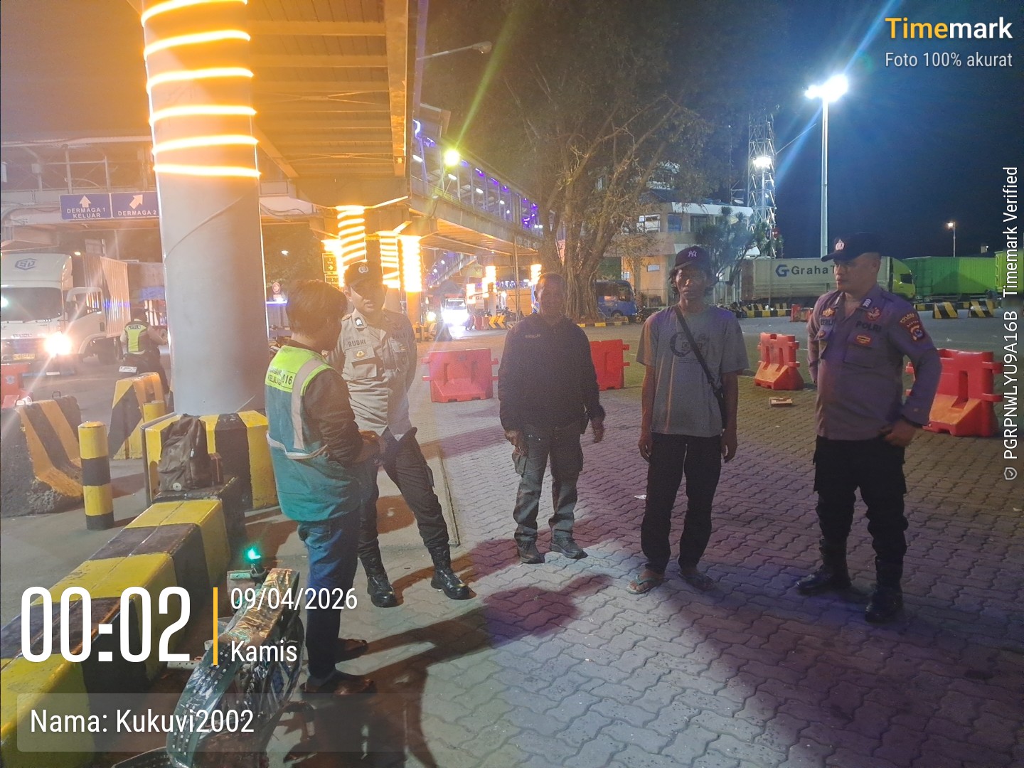 Personil Polsek KP Merak Polres Cilegon Laksanakan Patroli Dialogis di Kawasan Pelabuhan.
