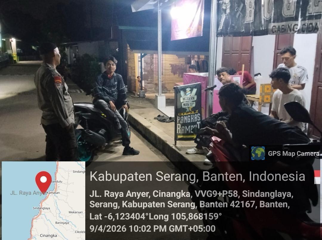 *Cilegon* – Dalam Rangka Pencegahan Street Crime dan Memelihara situasi keamanan dan ketertiban serta memberikan rasa aman dan nyaman di masyarakat,Salah satu upaya untuk mewujudkan hal tersebut sebagaimana yang dilakukan oleh Personil Polsek Cinangka Polres Cilegon Polda Banten melaksanakan giat patroli blue light malam hari hingga menjelang pagi, Jumat (10/04/2026).