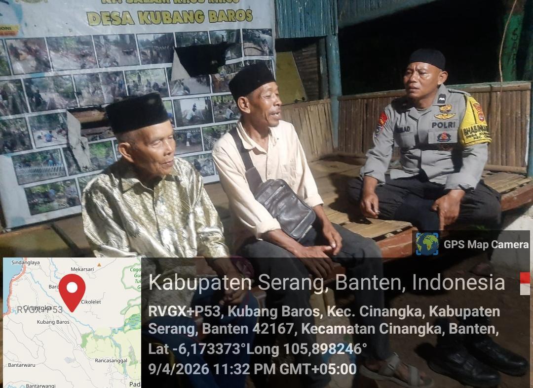 Kapolres Cilegon Polda Banten AKBP Martua Raja Taripar Laut Silitonga Melalui Kapolsek Cinangka Polres Cilegon Polda Banten AKP Rusnata Mengatakan kegiatan sambang ini rutin dilaksanakan oleh seorang babinkamtibmas di daerah binaannya setiap hari guna mendekatkan diri kepada masyarakat juga memberikan pesan-pesan kamtibmas diantaranya menghimbau kepada masyarakat agar meningkatkan kewaspasaan guna mencegah terjadinya tindak kriminal.